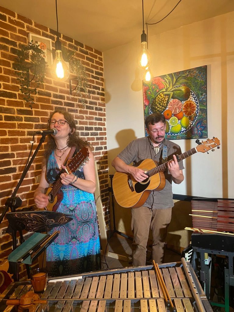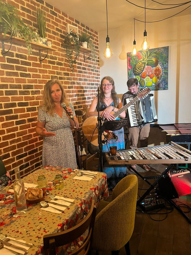 Uroczy muzyczny wieczór w uroczej knajpce. Przy okazji koncertu była też kolacja po polsku – barszcz czerwony, bigos i desery. Nasze żołądki czuły się nieco zdezorientowane bo od tygodnia jedliśmy francuskie sery, ryby i owoce morza z winami a tu… bigos. Nie byle jaki bigos – to był Bigos przez duże „B”! Jedzenie było wyborne!